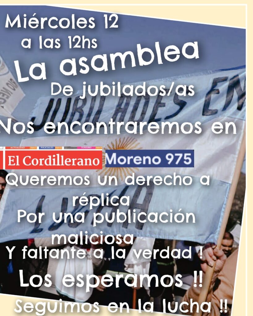 La agrupación, que ha encabezado numerosas movilizaciones por la defensa de derechos de Jubilados y Pensionados, reafirmó que continuará con sus reclamos de forma pacífica, pero exigió “respeto a la verdad y a la memoria colectiva” frente a lo que consideran un intento de manipulación mediática de parte de quien nos gobierna.